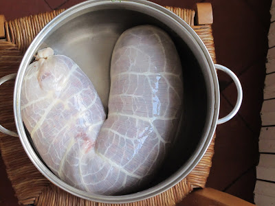 La fabrication de l'haggis en France pose toujours un problème à cause de réglementation des abattoirs. Selon la loi, la panse d'agneau ne peut pas sortir sans être coupé en rubans et lavé avec scrupule. Ma recette pour le plat national de l'Écosse évolue toujours, mais la baudruche de vache, aimablement fournit par madame au Boudreau servirait. Le specialist des boyaux avait déménagé du Quai de Versailles à St. Étienne de Montluc il y a 30 ans, et j'ai roulé là avec un vent du nord-est sur le dos enfin entouré par des champs givrés et calmes. Le retour dans le vent a éxigé un pause café et l'excuse pour un délicieux pain au chocolat : le boulanger au coin dans le bourg de Sautron un meilleur ouvrier de France, qui fait toujours confiance. Une fois décongelé, j'ai suffisament d'esprit de rappeler la meilleure sauce soja chez l'épicerie chinoise à Beausejour (quelle gamme !) qui, avec le citron, rélève le plat végétalien de l'ordinaire (tous les autres ingrédients déjà encaissé du marché de Talensac)